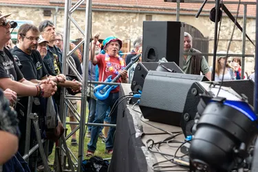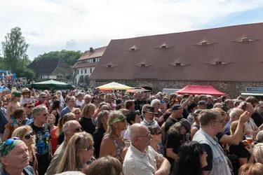 Beispielsweise, als dem Festival in diesem Jahr eine Gewitterfont nahe rückt. Die Wettervorhersage prophezeite starken Sturm und Hagel. Mehr als 2.500 Besucher vergnügen sich auf dem Festivalgelände, bis etwa 16:30 Uhr bei schönstem Sonnenschein. Darunter sind auch viele Familien, Kinder, ältere Menschen und natürlich jede Menge Fans und Musikliebhaber, die vor allem wegen der Bands da sind. Dann rollt die Gewitterfront heran, verdunkelt den Himmel. Es wird drückend heiß und schwül. Wo sollen, falls plötzlich der Hagelsturm losbricht, die vielen Menschen hin? In der Scheune ist kaum noch Platz, es spielt gerade das „Mama Basuto Blues Ensemble“ und alle Plätze sind restlos besetzt. Wie werden sich so viele Menschen bei einem Hagelsturm verhalten? Wird es eine Panik geben? Am Himmel grollen die bedrohlichen Wolken immer näher, aus Kriebstein kommt die Meldung, dass es dort bereits erbarmungslos hagelt.