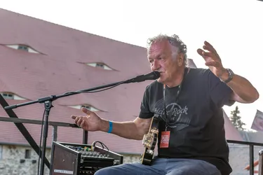 Schließlich spielt Andi Valandi draußen auf der Wiesenbühne bei Lagerfeuer und Festivalromantik seinen düsteren Alltagsblues.