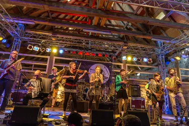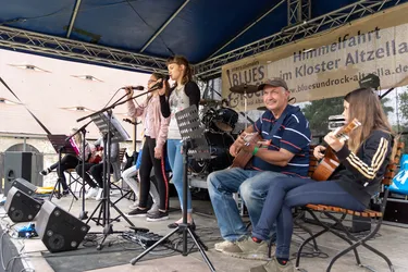 Der Regen hört einfach auf. Die Wolken ziehen ab, später kommt sogar die Sonne wieder durch, das Unwetter hat das Festival verschont. Die begeisterten Fans in der Scheune, die dankbares Publikum für das „Mama Basuto Blues Ensemble“ sind, haben noch nicht einmal mitbekommen, dass es kurz regnete.
