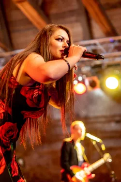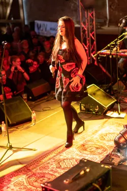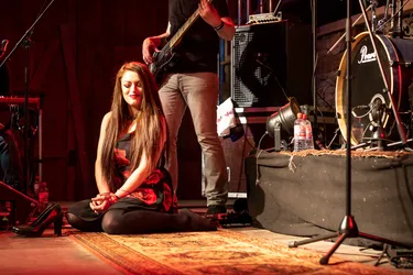 Die Frau im roten Kleid tanzt. Sie tanzt, bis sie erschöpft zusammenbricht, die langen Haare kleben ihr am verschwitzten Gesicht. Sie schaut zu Boden, zieht sich dann die Schuhe von den nackten Füßen und stellt sie vorsichtig neben sich. Die langen Beine winkelt sie elegant an, als ob sie eine Kunstschwimmerin ist, die im Takt der Musik zierliche Figuren auf der Oberfläche des Wassers zaubert. Sielächelt und lauscht der Musik ihrer Band. Ihr Blick träumt dem Gitarristen zu, der jetzt am Bühnenrand steht und seine Riffs in die große Scheune von Altzella direkt über die Menschen im Publikum peitscht. Endlos spielt er, steigert sich in die Läufe hinein, seine Gitarre jault und kreischt, die Hooks sitzen, die Lines umgarnen die Menschen.